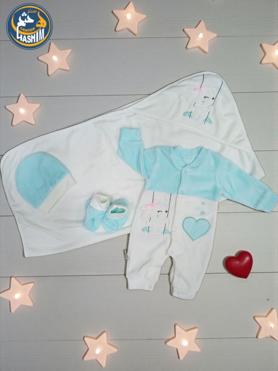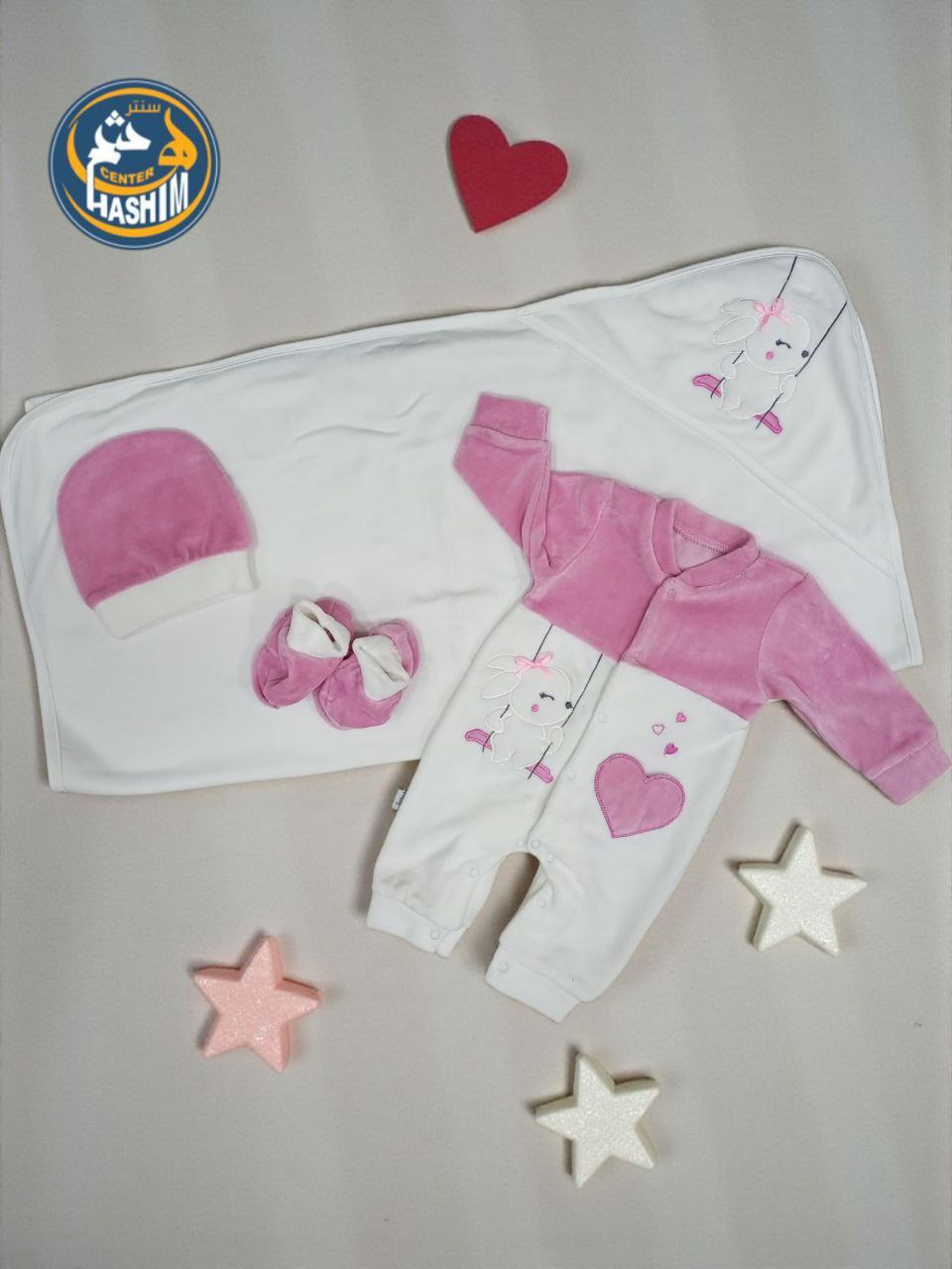 Hashem Center(العربية) طقم تل قطيفه فرو ارنب فيونكه وقلب بارز - Hashem Center