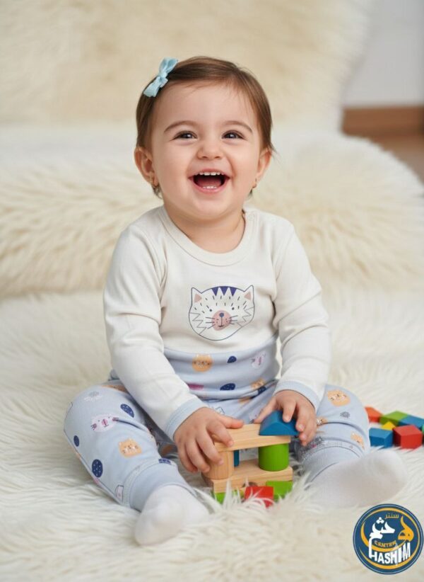 امنحي طفلتك الراحة التي تستحقها مع هذه البيجامة القطنية الأنيقة. تتميز بتصميم عصري يجمع بين البساطة والبهجة، مما يجعلها مثالية للاسترخاء في المنزل أو للنوم بعمق وهدوء.
