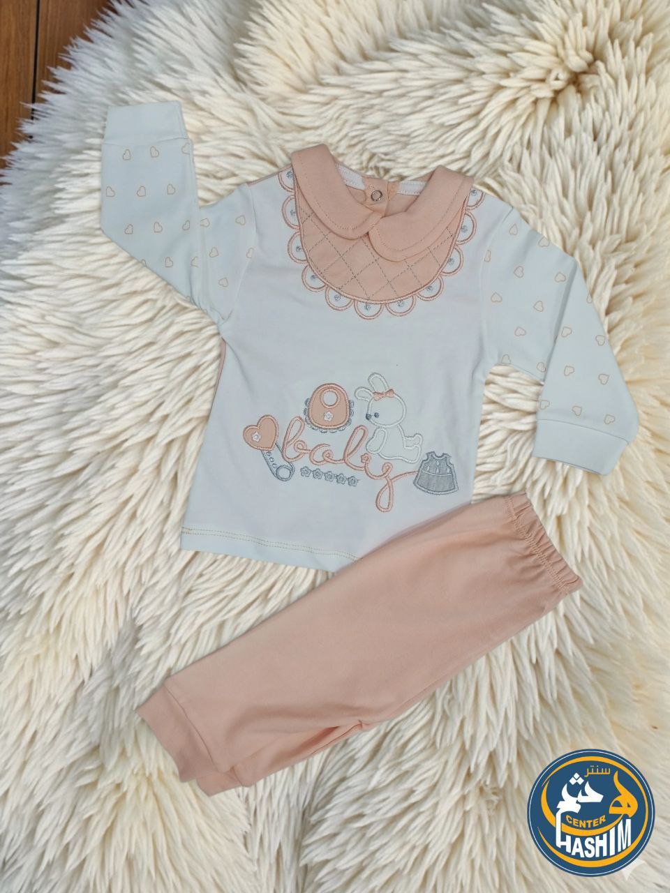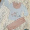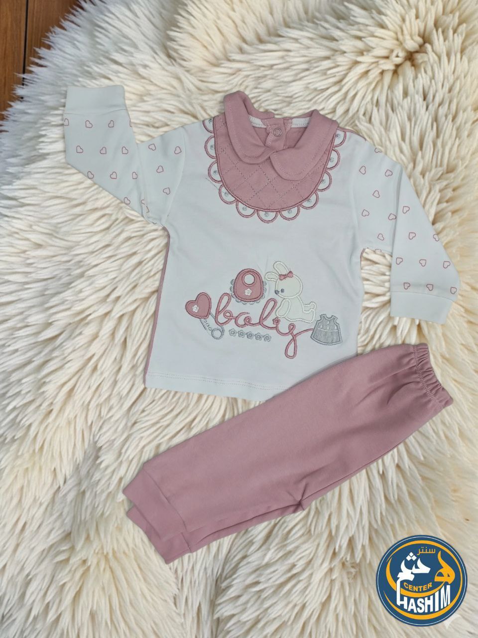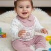 امنحي طفلتك إطلالة تجمع بين الرقة والراحة مع هذا الطقم المميز من مجموعة الموسم. يتميز التصميم بتفاصيل دقيقة تشمل تطريزاً ناعماً لشكل الأرنب مع فيونكة وقلب، مما يضفي لمسة جمالية ساحرة.