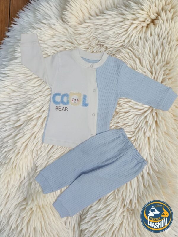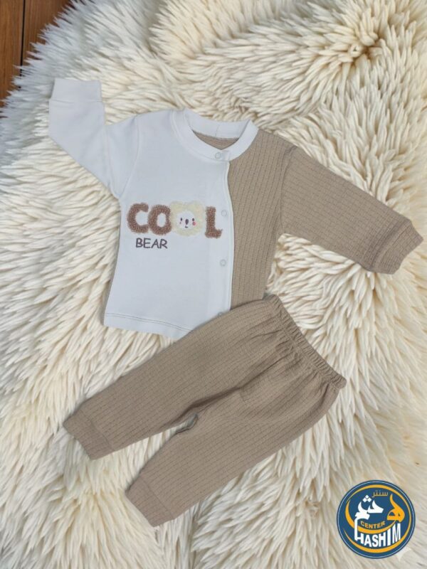 امنحي طفلك إطلالة تجمع بين الأناقة والراحة المطلقة مع هذا الطقم المميز. يتميز التصميم بلمسة عصرية تدمج بين الألوان الهادئة وتفاصيل وجه الدبدوب البارز التي تضفي حيوية ومرحاً على مظهر صغيرك.