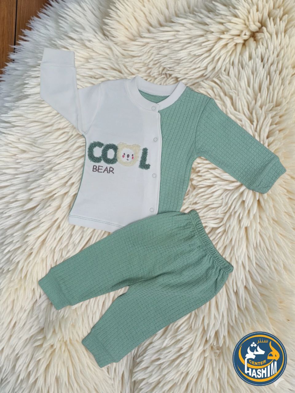 امنحي طفلك إطلالة تجمع بين الأناقة والراحة المطلقة مع هذا الطقم المميز. يتميز التصميم بلمسة عصرية تدمج بين الألوان الهادئة وتفاصيل وجه الدبدوب البارز التي تضفي حيوية ومرحاً على مظهر صغيرك.