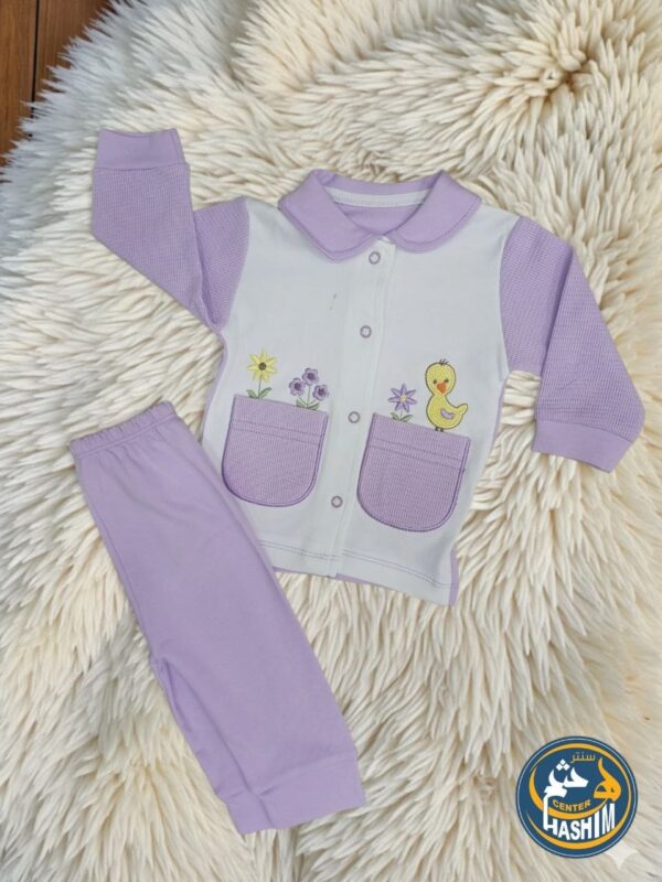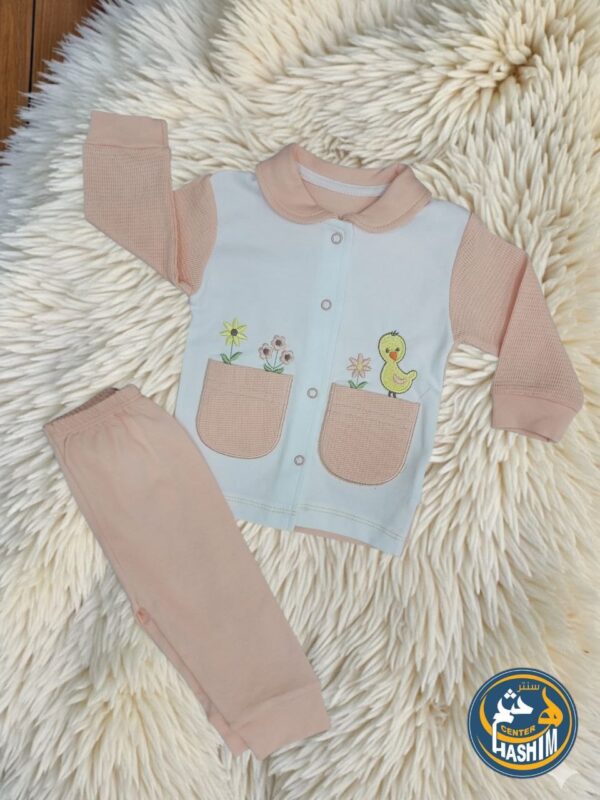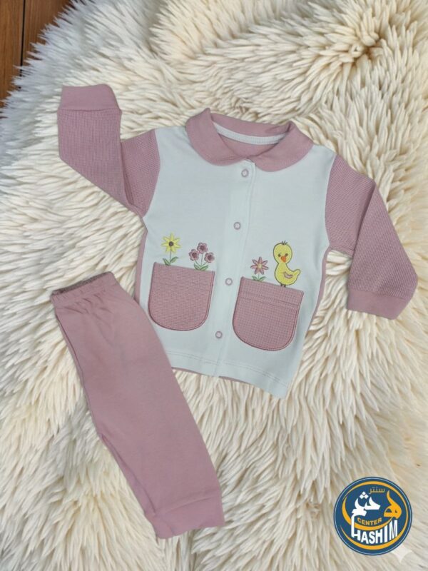 طقم بيبي قطعتين (جاكيت وبنطلون) بمطرزات لطيفة