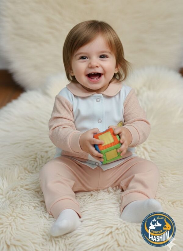 البنطلون: بنطلون مريح بخصر مطاطي لضمان ثباته وراحة الطفل طوال اليوم.