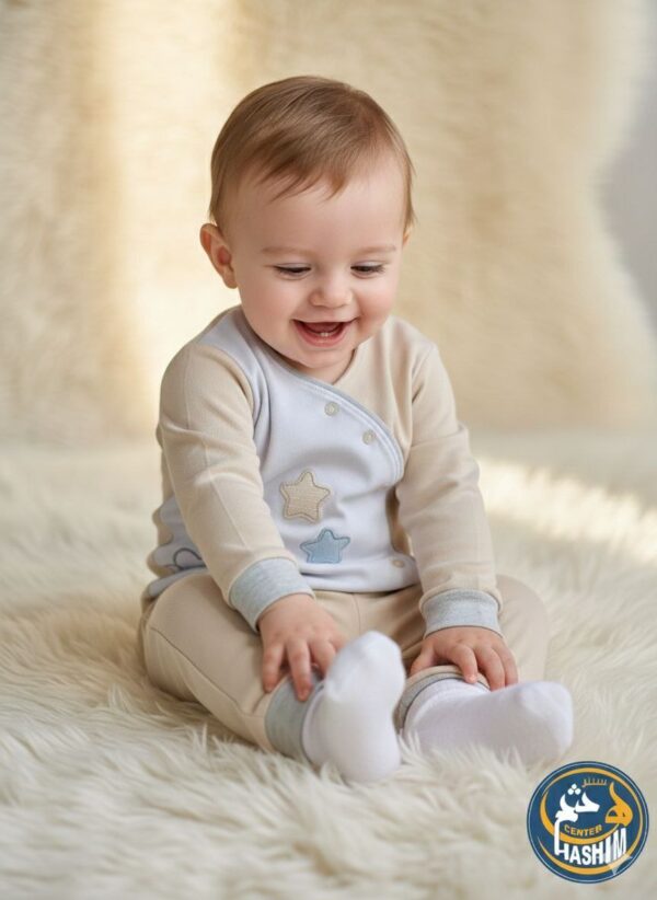 الخامة: قطن ناعم فائق الجودة ولطيف على بشرة الأطفال الحساسة.