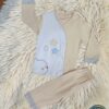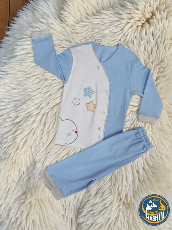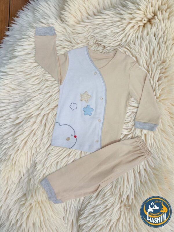 التصميم: بدلة مكونة من قطعتين بتصميم “لف” (Wrap) مريح لسهولة الارتداء، مزينة بنجوم بارزة على الصدر لإطلالة مبهجة.