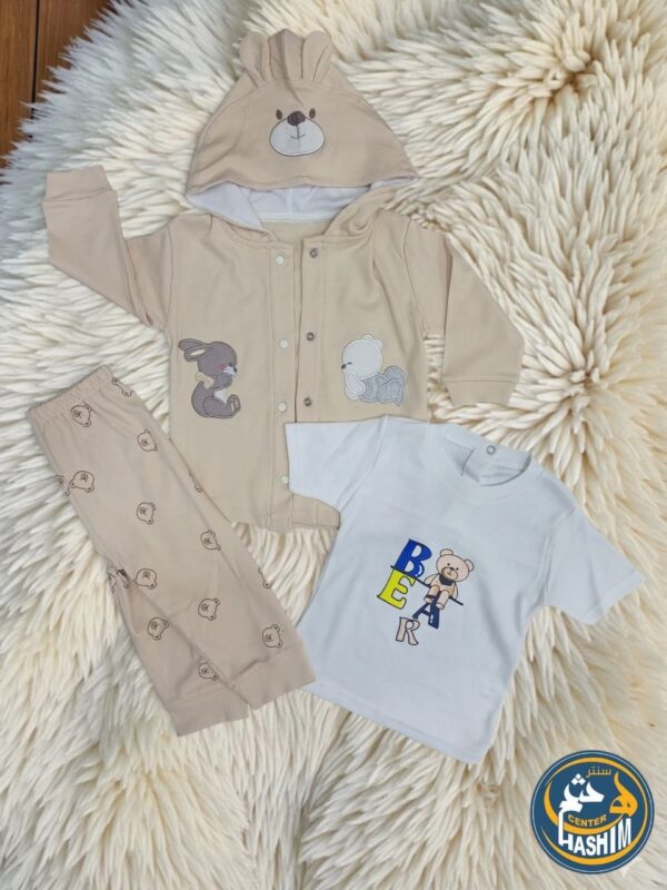 طقم صوفيا بيبي – 3 قطع بتصميم الدب والأرنب 🐾