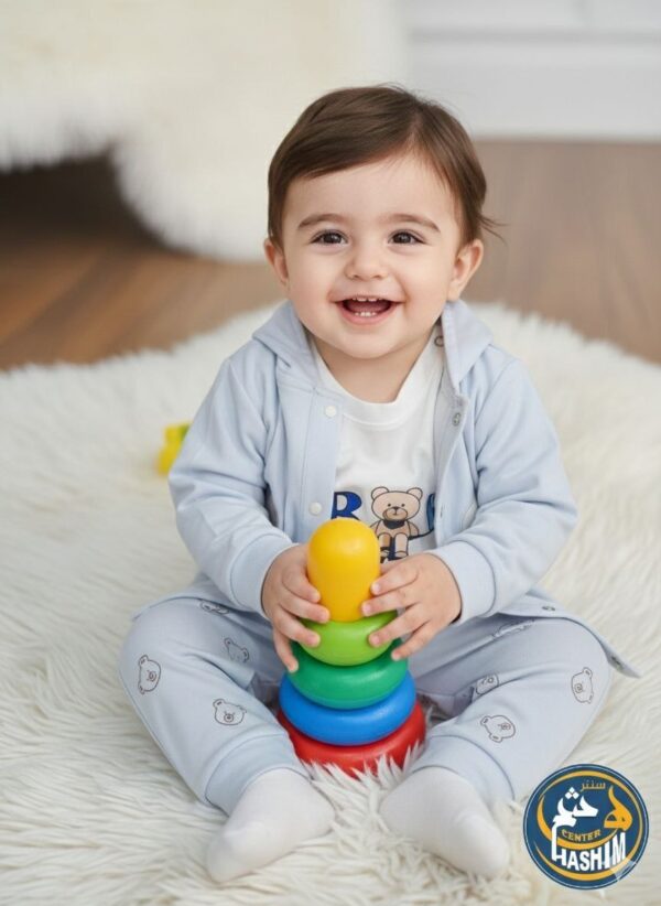 تصميم عملي: يتكون من 3 قطع (جاكيت بهودي، بنطال مريح، وتيشيرت داخلي).