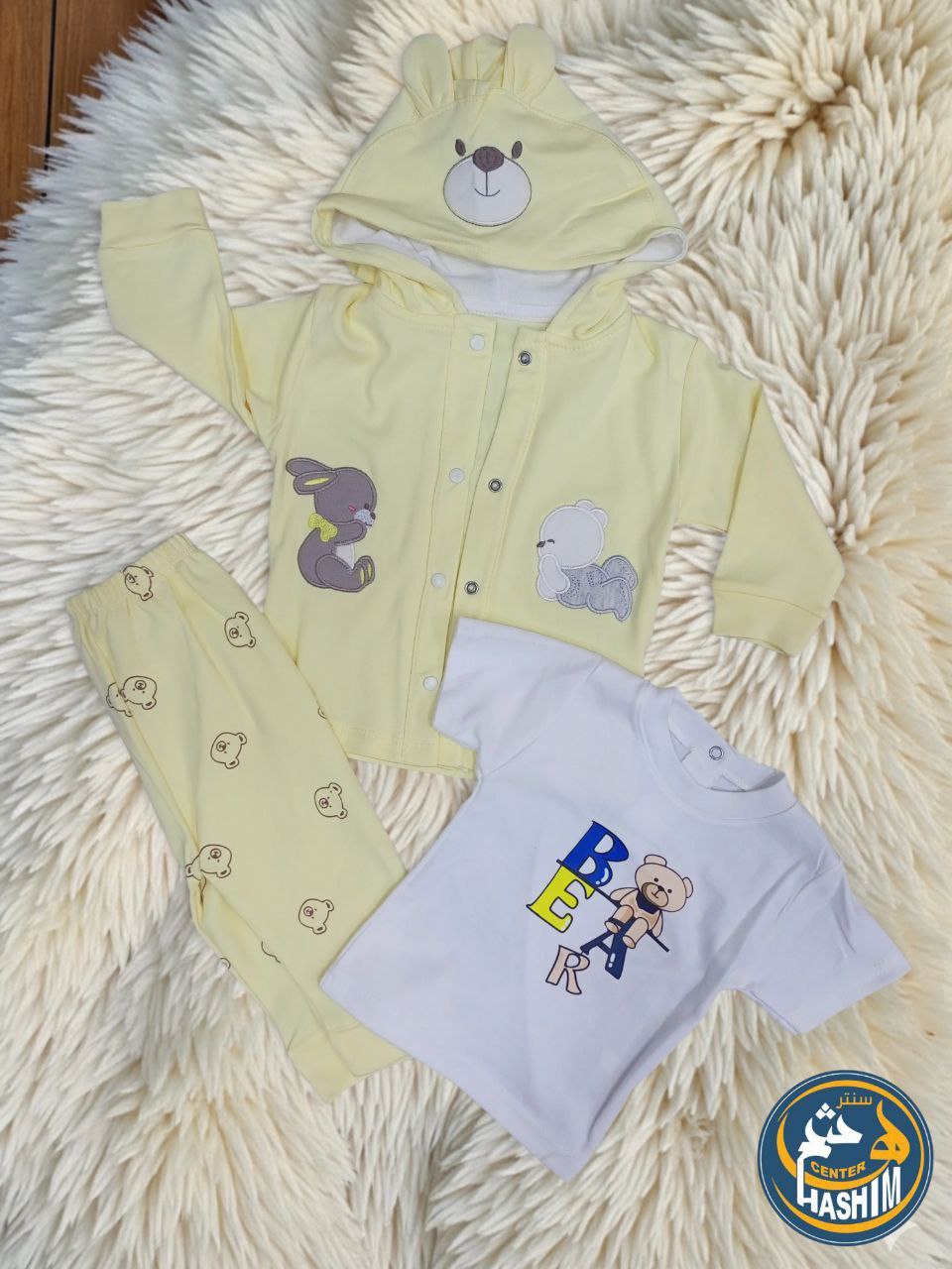 طقم صوفيا بيبي – 3 قطع بتصميم الدب والأرنب 🐾