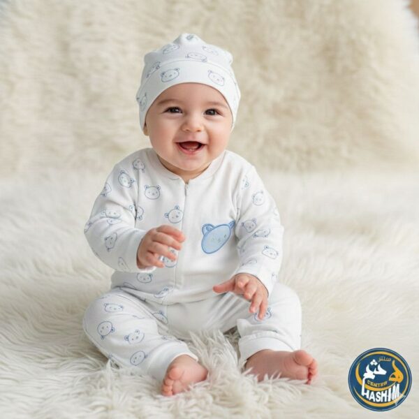 استمتعي بإطلالة ناعمة ومريحة لطفلك مع هذا السالبوت المصمم خصيصاً ليناسب بشرة الأطفال الحساسة. يتميز التصميم بطبعات رقيقة تضفي لمسة من البهجة، مع قبعة مطابقة لتكتمل الأناقة والدفء.