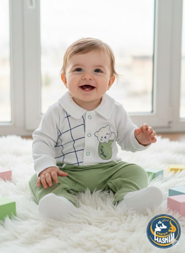 خامة قطن طبيعي: نسيج قطني ناعم جداً ولطيف على بشرة طفلك، يوفر تهوية مثالية وراحة طوال اليوم.