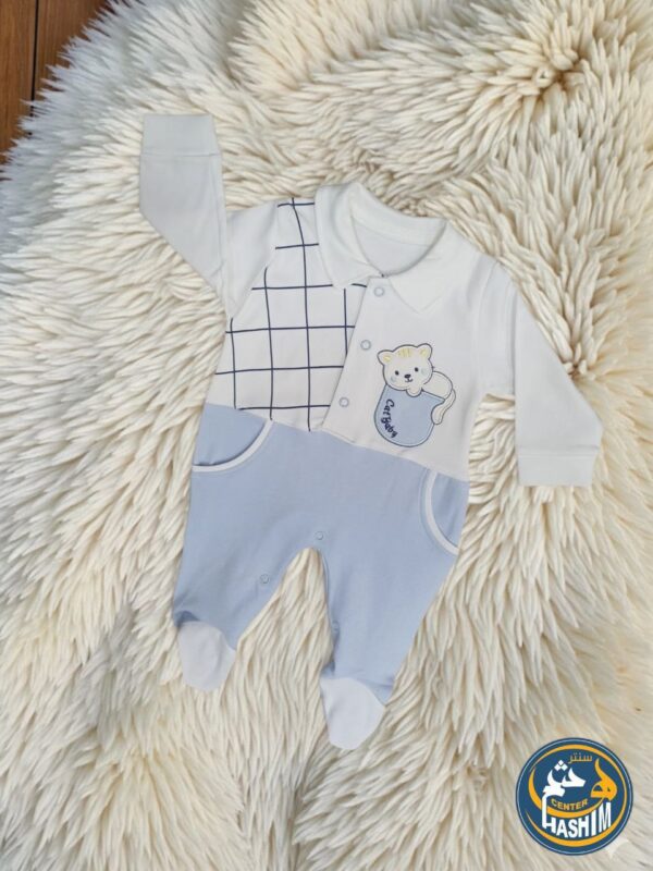 سهولة في الارتداء: مزود بأزرار كبس أمامية متينة لتسهيل عملية اللبس وتغيير الحفاض بسرعة.
