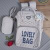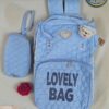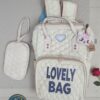 تصميم عصري وجذاب: متوفرة بنقشة “BABY BAG” أو “LOVELY BAG” مع لمسات أنيقة (مثل تعليقة قطة صغيرة في بعض الألوان).