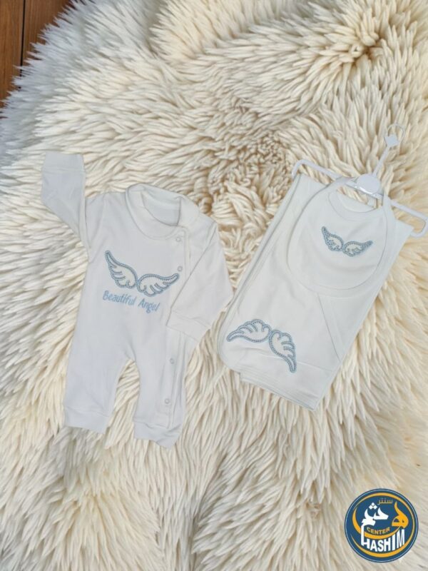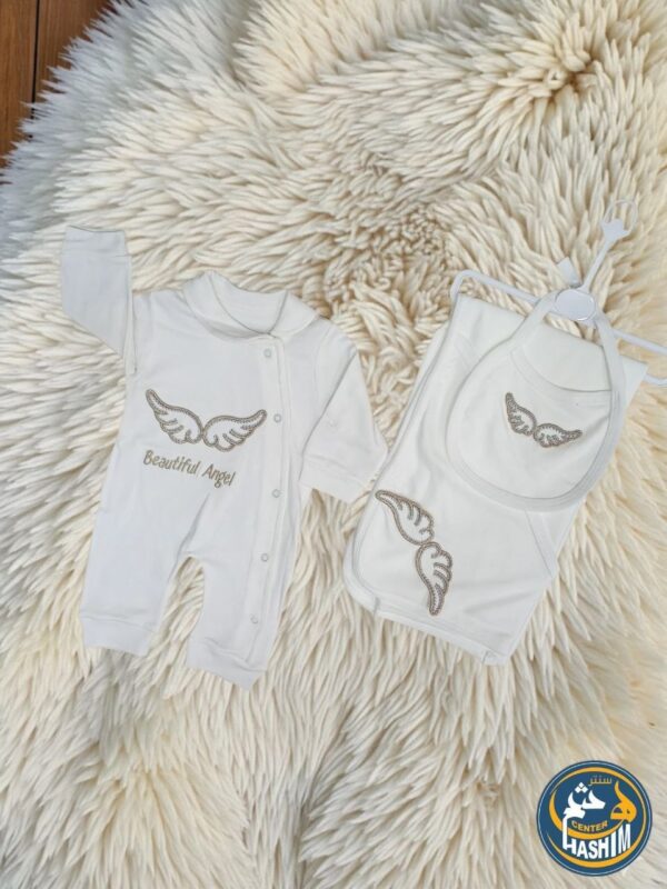 امنحي طفلك الدفء والنعومة الفائقة مع طقم الشتاء الفاخر من تشكيلتنا الجديدة. يتميز الطقم بتصميمه الراقي المزين بأجنحة الملائكة الرقيقة، ليجمع بين المظهر الأنيق والراحة المثالية لبشرة طفلك الحساسة.