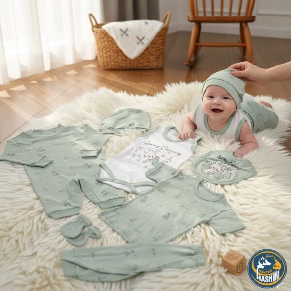مجموعة متكاملة: يحتوي الطقم على كل ما يحتاجه رضيعك، من ملابس أساسية وإكسسوارات متناسقة.