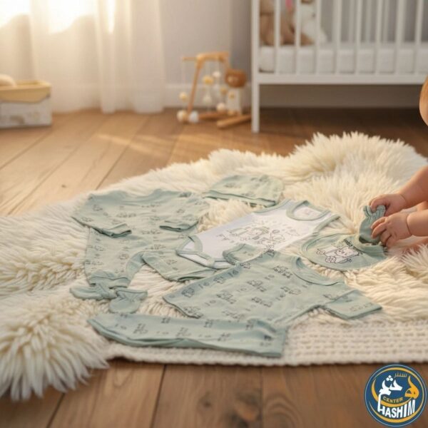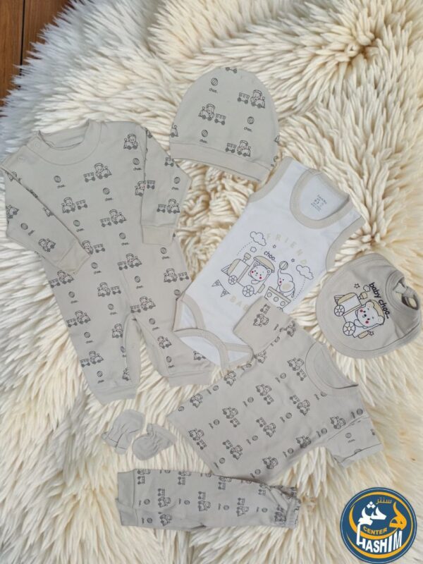 استقبلي طفلك بأناقة وراحة تامة مع هذا الطقم المتكامل المكون من 7 قطع متناسقة. يتميز التصميم بنقشات هادئة لـ “دبدوب وعربة قطار” تضفي لمسة من البراءة والجمال على إطلالة طفلك الأولى.