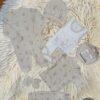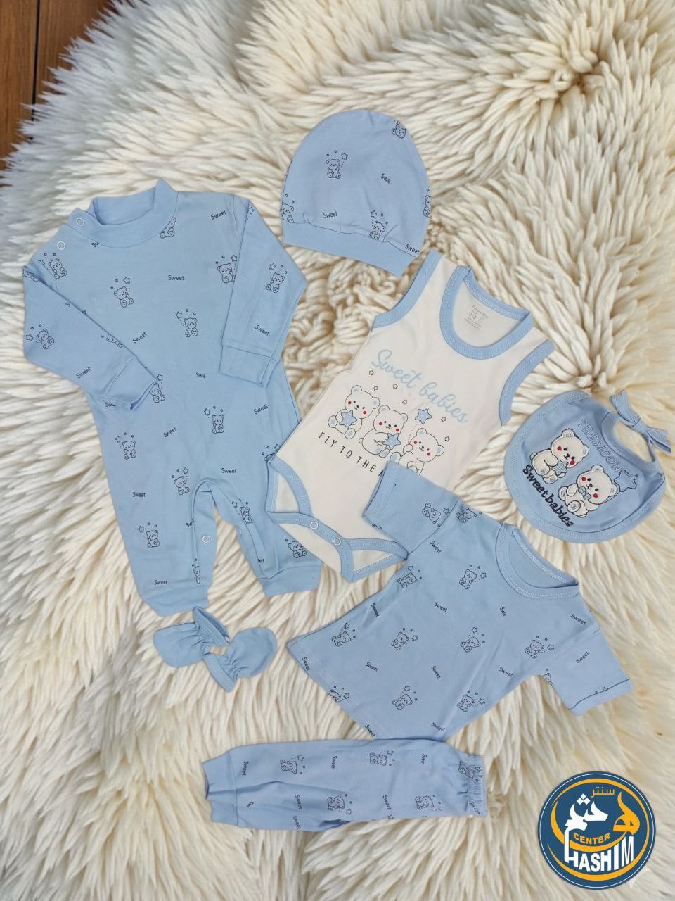 دللي طفلك بنعومة فائقة مع هذا الطقم المتكامل المصنوع من أجود أنواع القطن الصافي. يتميز التصميم بطبعات “دبدوب” رقيقة وألوان هادئة تناسب حديثي الولادة، مع توفير راحة تامة لبشرة طفلك الحساسة طوال اليوم.