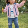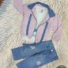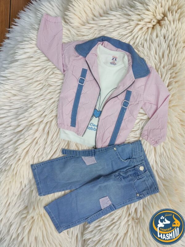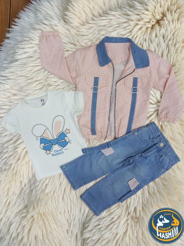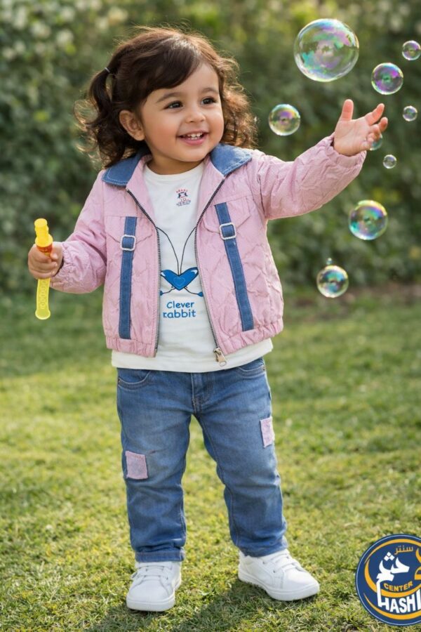 امنحي طفلتك إطلالة تجمع بين الرقة والعملية مع طقم الخروج المكون من 3 قطع. يتميز هذا الطقم بتصميمه العصري الذي يجمع بين جاكيت مبطن بتفاصيل راقية، وكنزة قطنية ناعمة مزينة برسومات لطيفة، بالإضافة إلى بنطال جينز مريح وعملي.