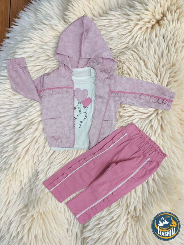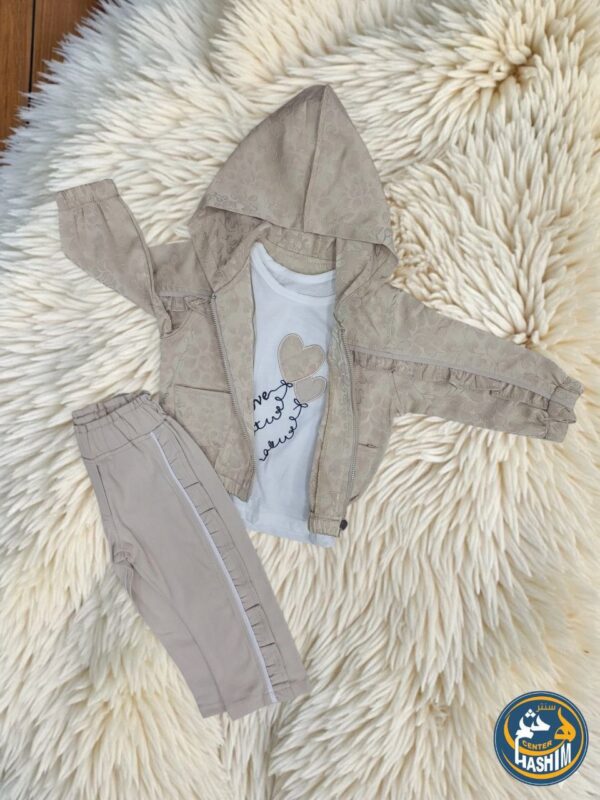 امنحي طفلتك إطلالة متكاملة وجذابة مع هذا الطقم المميز، المصمم بعناية ليجمع بين الأناقة العصرية والراحة التامة. يتكون الطقم من ثلاث قطع متناسقة تضمن مظهرًا رائعًا في مختلف الأوقات.