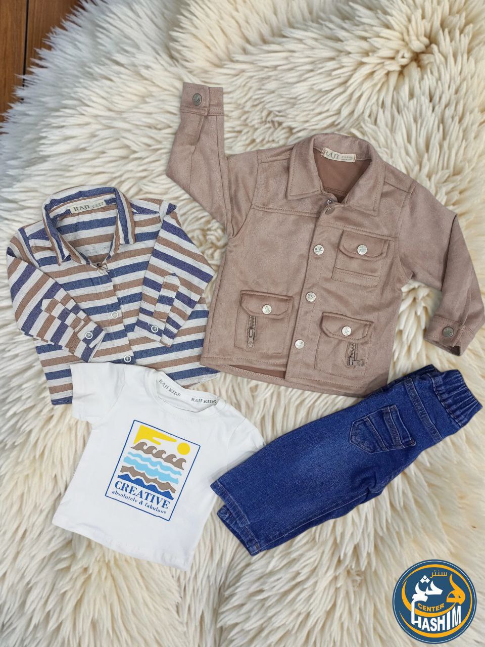 “مزيج مثالي بين خامة الشمواه الناعمة والجينز العملي، ليعطي طفلك إطلالة ‘مودرن’ تخطف الأنظار في كل مكان.”