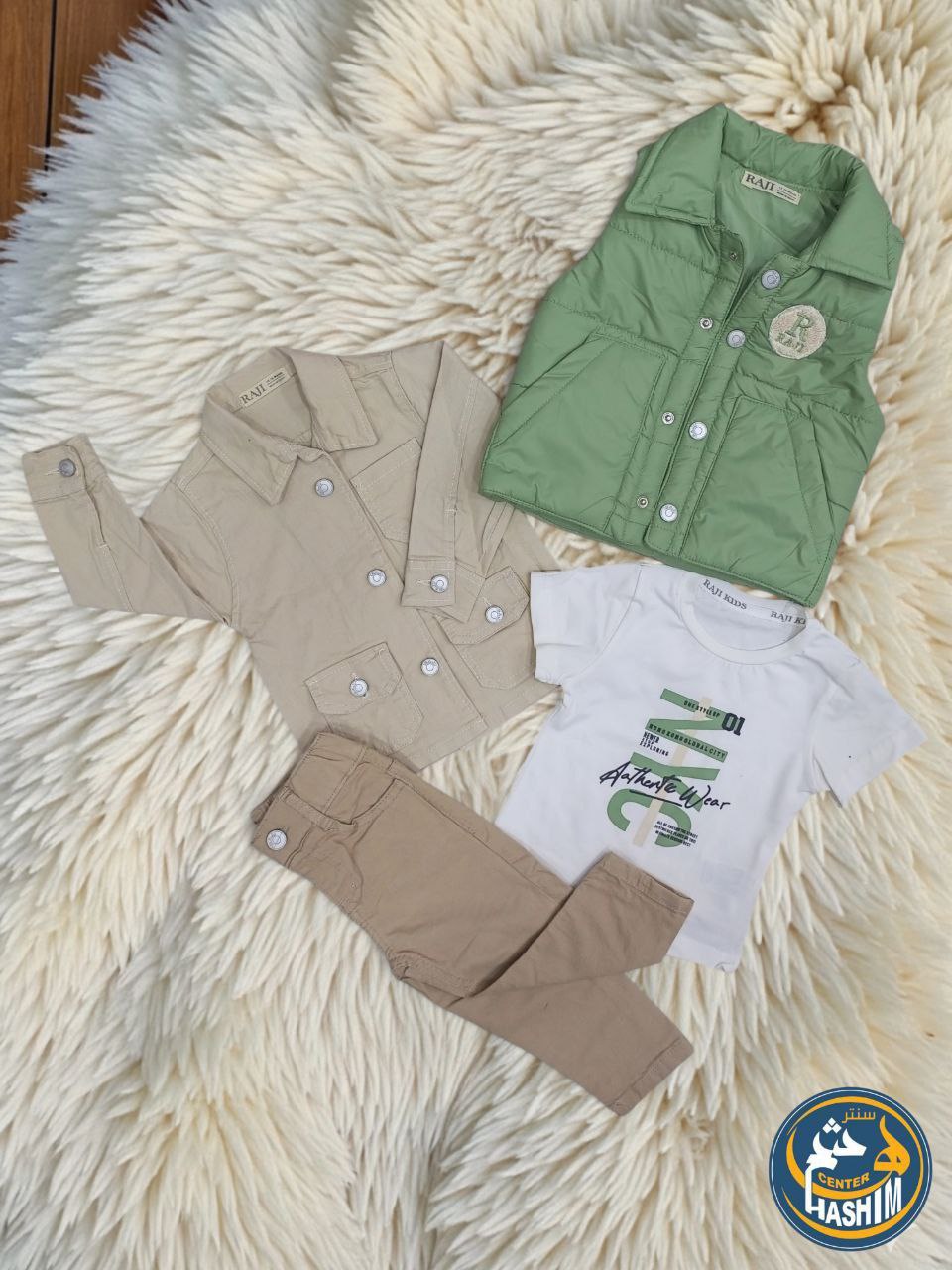 تصميم متناسق: يتكون من 4 قطع متناغمة (جاكيت، قميص، وبنطلون) لضمان مظهر مكتمل وجاهز فوراً.