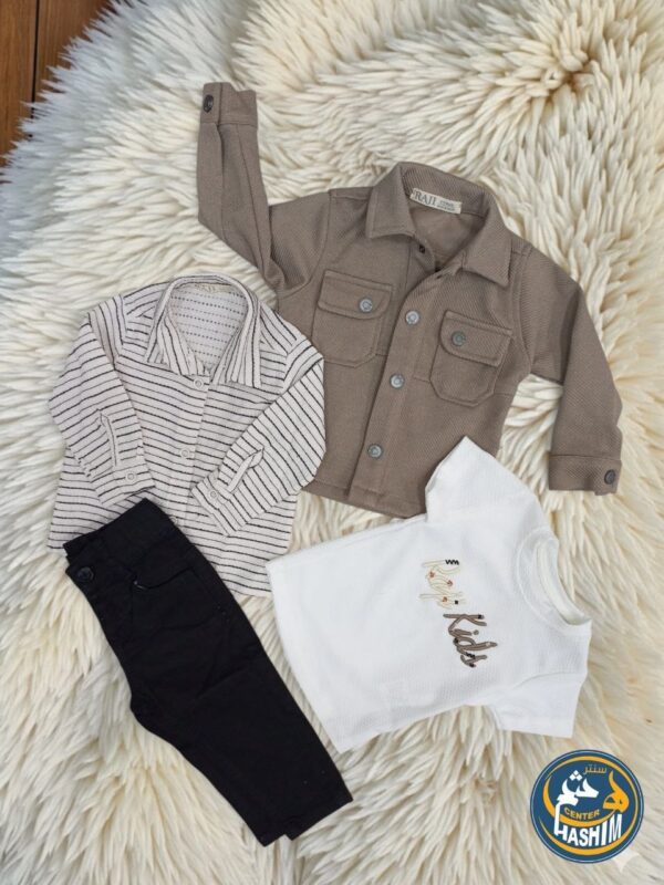 تأنق صغيرك بإطلالة عصرية تجمع بين الرقي والراحة. طقم خروج متكامل مصمم بعناية ليمنح طفلك مظهراً جذاباً في المناسبات والنزهات.