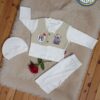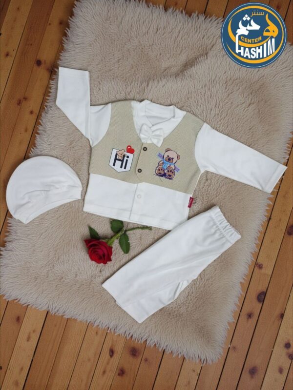 استقبلي طفلك الجديد بإطلالة تجمع بين الرقي والراحة مع هذا الطقم المخصص للمناسبات السعيدة والسبوع. تم تصميم الطقم بعناية ليوفر لطفلك مظهراً عصرياً بلمسات طفولية دافئة.