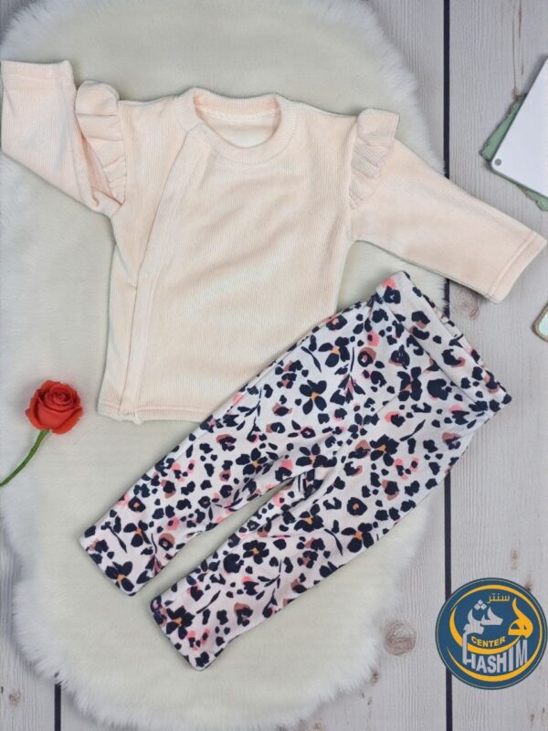 دللي صغيرتك بـ طقم قطيفة فاخر يجمع بين الدفء والجاذبية. يتألق الطقم ببلوزة مضلعة سادة مزينة بكباسين وسوستة لإطلالة أنيقة وعملية.
