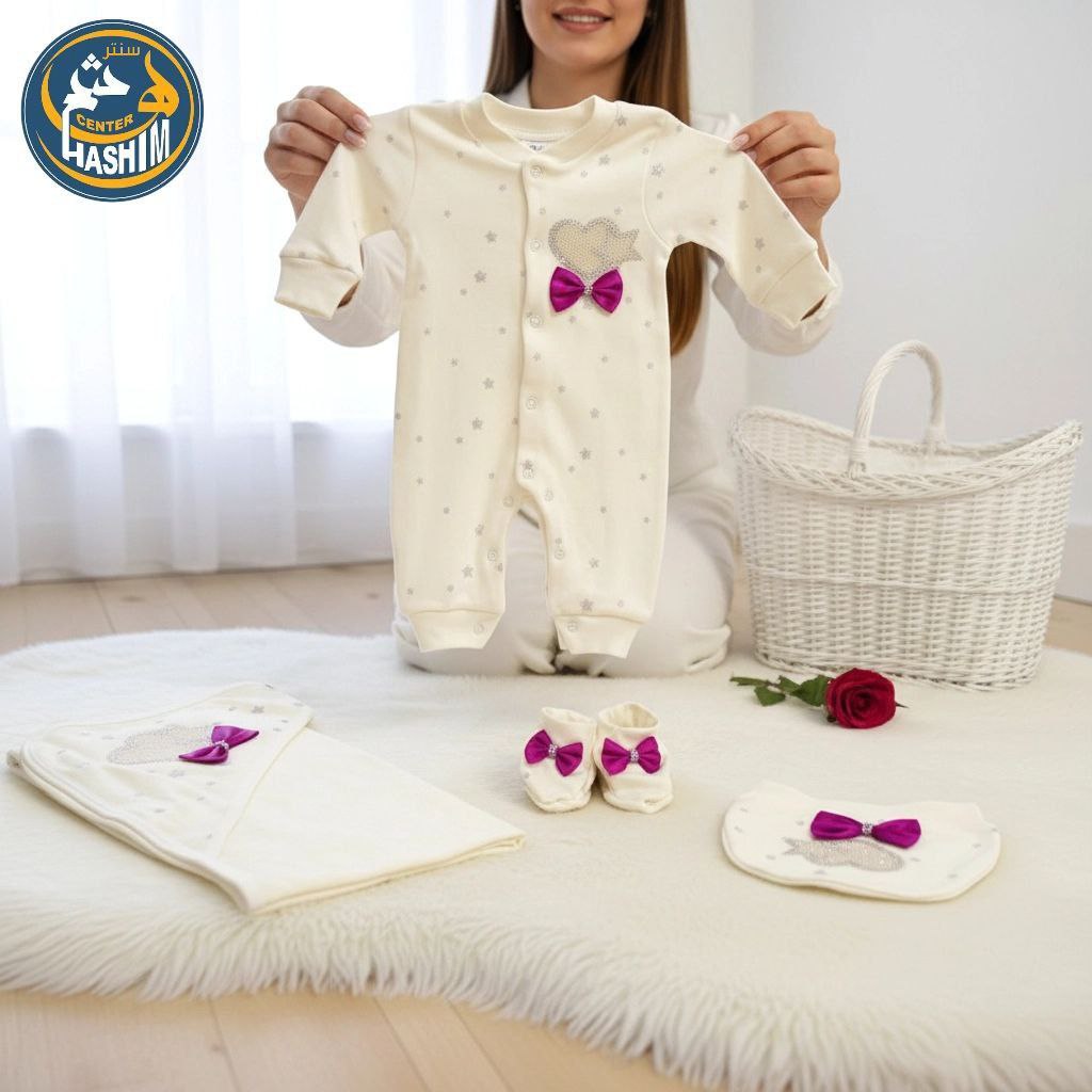 دللي طفلتك بإطلالة ساحرة مع طقم الاستقبال القطني الفاخر، المصمم بعناية فائقة ليجمع بين الأناقة والراحة المطلقة في أولى أيامها.