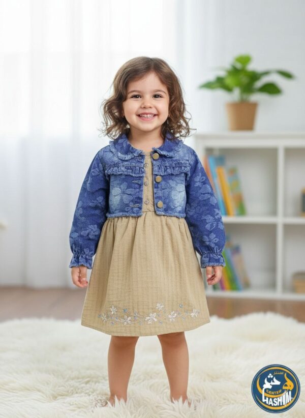 فستان بناتي قطعتين بجاكيت جينز مميز 🌸✨