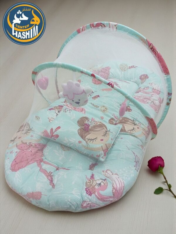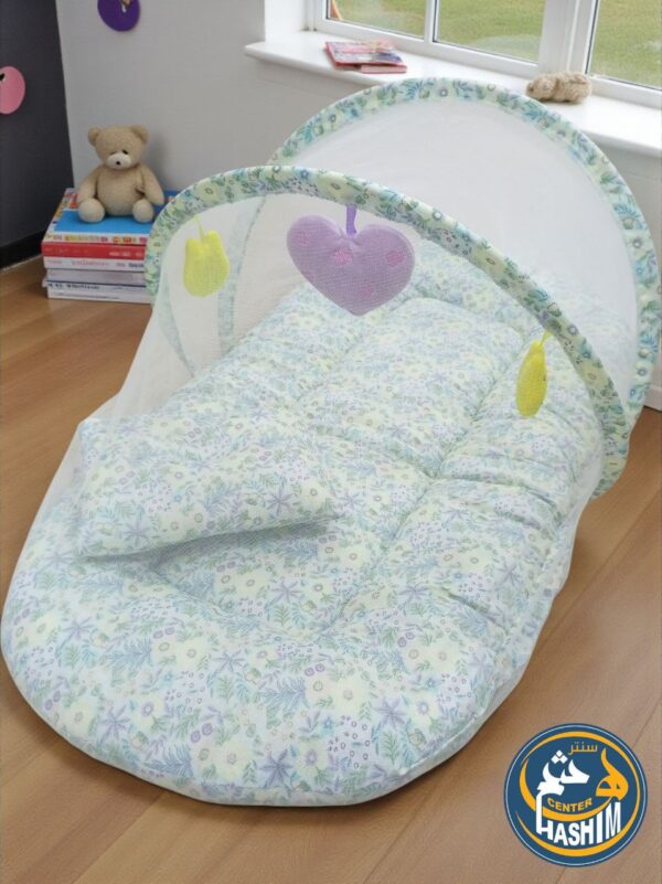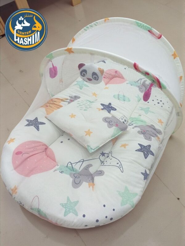 تصميم عملي: يشتمل على ناموسية مدمجة للحماية من الحشرات، مع وسادة ناعمة لدعم رأس الطفل.